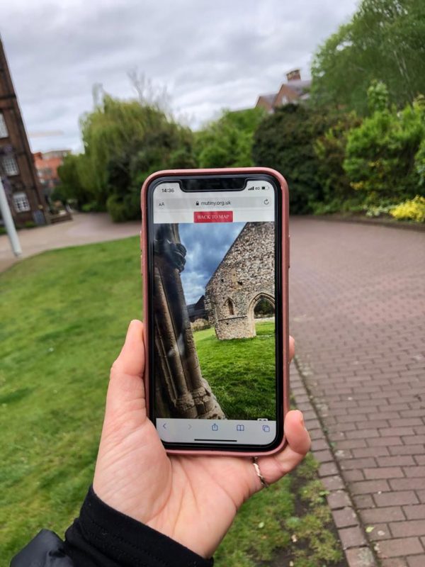 Building an Open Source web app is not to be considered lightly, as the technical challenges are much higher than for a native iOS or Android app. However, the benefits are the ability to make something that can be rapidly updated and changed in code. Sophie Mellor built the main shell of code using LeafletJS and ARJS. We also worked with Nicolo Carpignoli on some of the AR code. Lining up story and assets for a walking experience is an odd combination of coding and GPS coordination. On two occasions, with roles reversed, Sophie and I worked between our studio in Plymouth and a laptop on the ground in Norwich lining up the assets, using latitude and longitude coordinates. This approach is more akin to the work of the SAS, than an exercise in new writing.