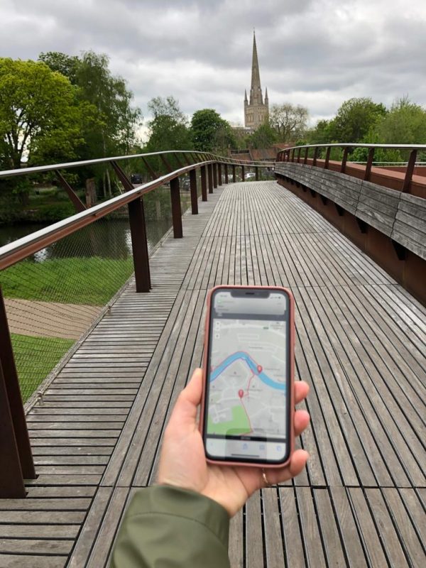 We were weaving between streams of human traffic, searching for pockets of space where we could pause and listen. Gathering beneath trees or flattening ourselves along pavements, we plugged into Imogen Hermes Gowar’s spellbinding Eleanor, a journey into the enigmatic, half-remembered life of Lady Eleanor Talbot. It is easy to be pulled in. As I listened to Gowar’s crisp, disembodied voice telling me about ghosts and places in Norwich where Eleanor might have been, I imagined Eleanor pacing along the dappled streets; tethered not only by the presence of her bones in the earth, wherever they may be, but by the invocation of her spirit by our collective memory.